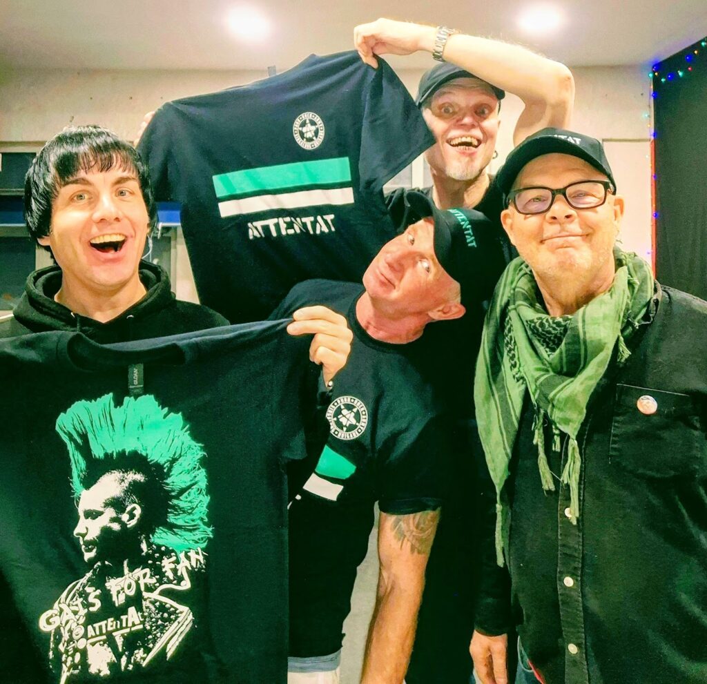 ”Här är gaisarna från götet”, ”Gårdakvarnen”, ”Flaggorna vajar” och förstås ”Heja, heja grönstart. Attentat spelade många av sina kändaste gaissånger och publiken blev gladare och gladare. Inte en horunge syntes till även om man tittade och lyssnade noga. Vinyler, t-shirts, kepsar, CD-skivor, tygmärken med mer gick åt som glass och spunnet socker på Liseberg en solig sommardag. Fy fan va härligt.